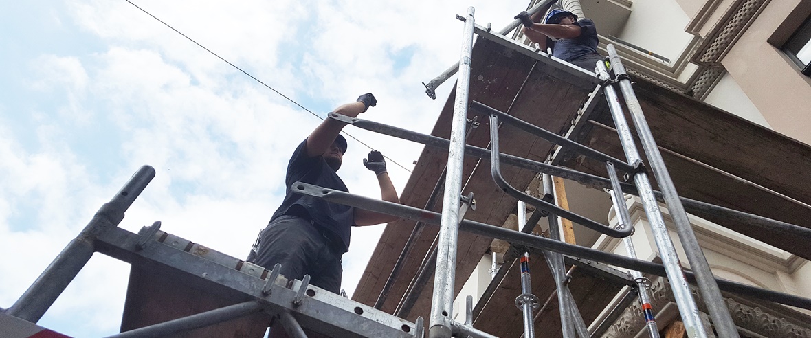 Wir bauen Gerüste hoch. Wir bauen Gerüste breit. Womit können wir Ihnen behilflich sein?